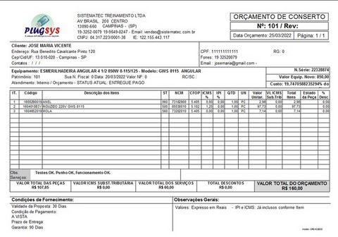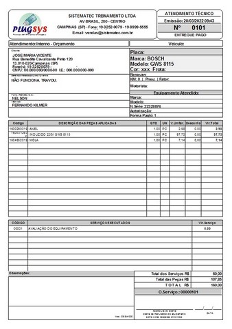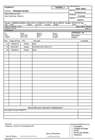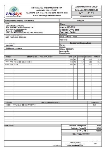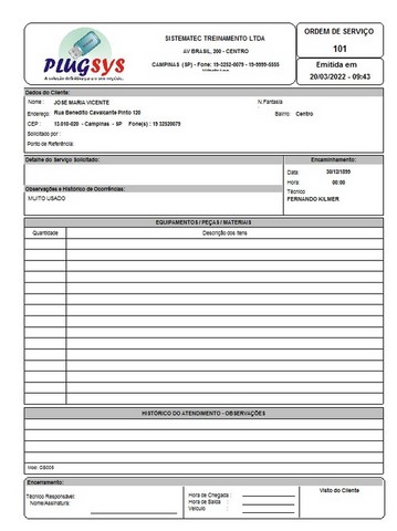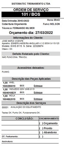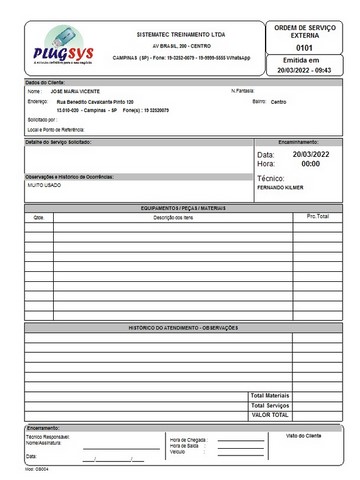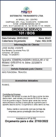 | 4 - Recebimento de Sinal nas Ordens de Serviço - Possibilidade de Crediário (várias parcelas) | Clique aqui... |
