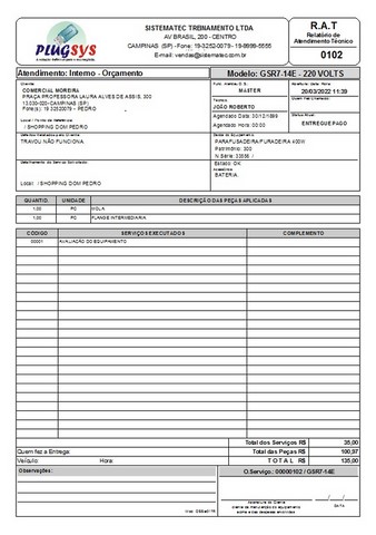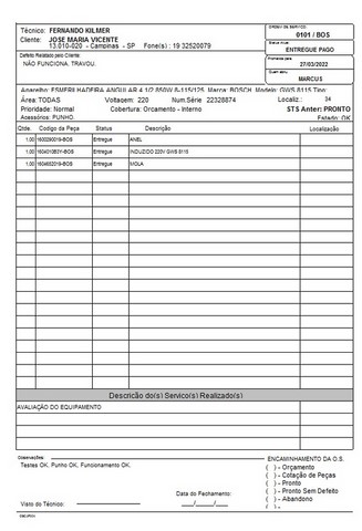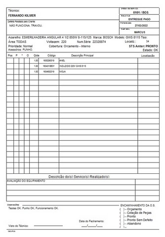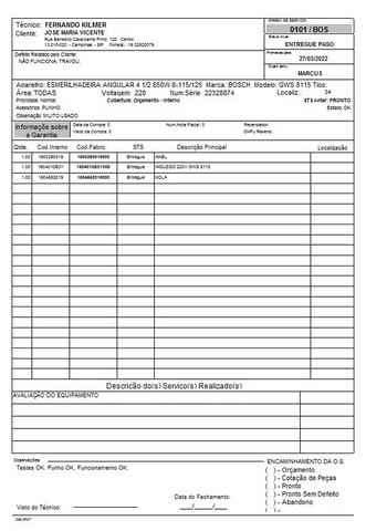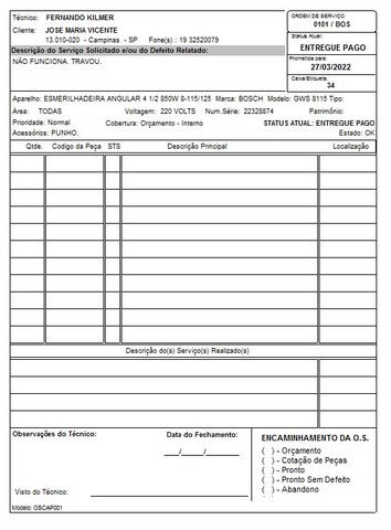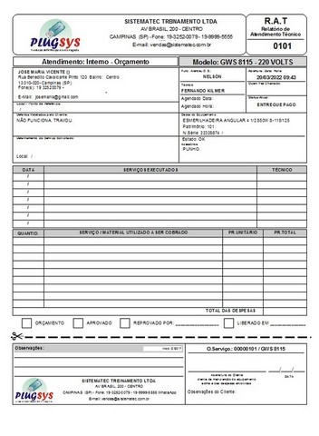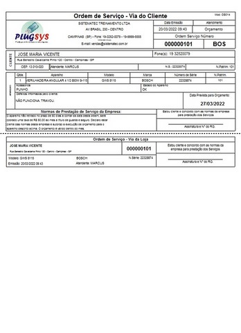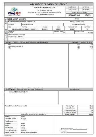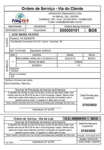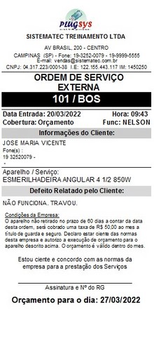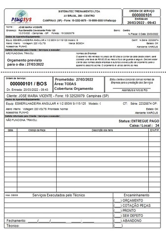 | 4 - Recebimento de Sinal nas Ordens de Serviço - Possibilidade de Crediário (várias parcelas) | Clique aqui... |